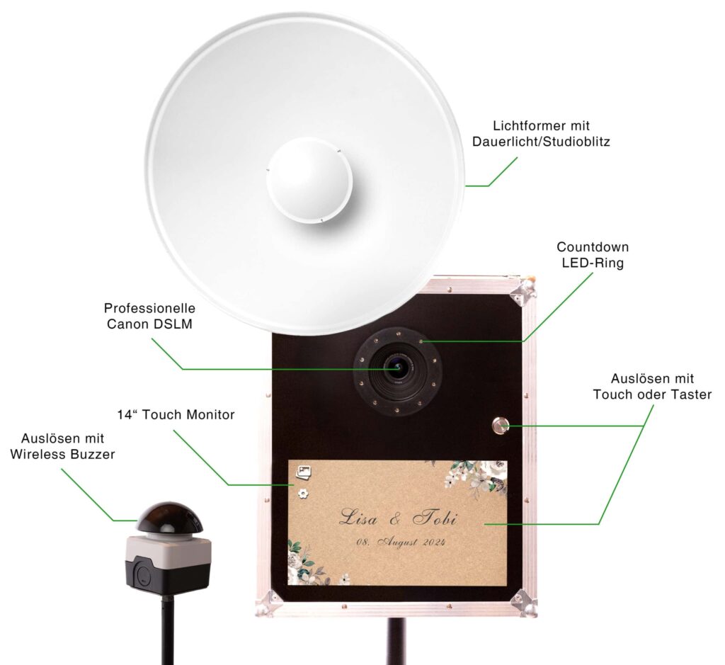 Egal ob Optik der Fotobox, Kamera oder viele weitere technische Features – in allen Bereichen bieten wir dir Top-Qualität!