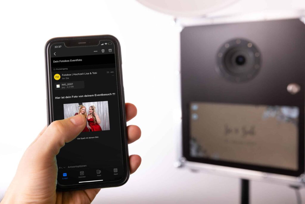 Mit unseren Fotobox Aktionen landen die Bilder direkt per E-Mail bei den Gästen.