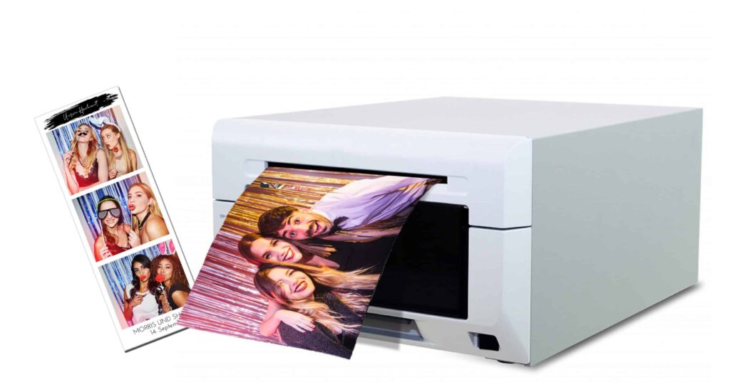Fotos direkt aus dem Profi-Fotodrucker ausdrucken. Innerhalb weniger Sekunden ist das Bild in den Händen deiner Gäste – ohne Wartezeit.